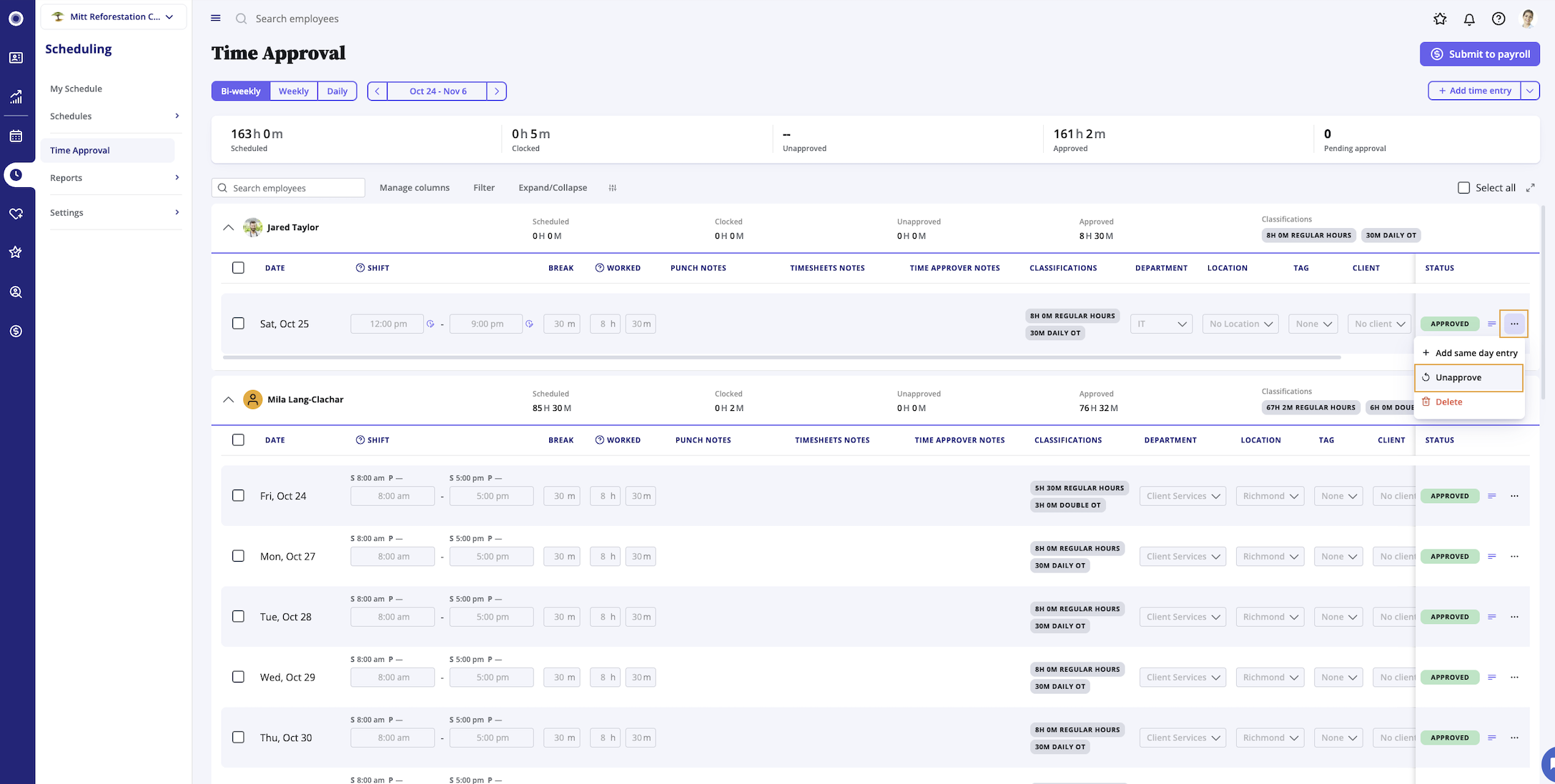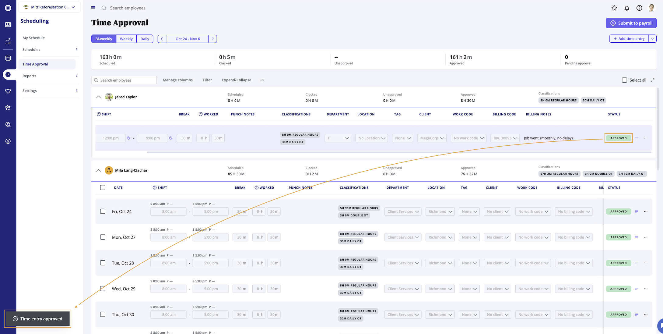How to navigate the Time Approval page in Rise Scheduling & Time Tracking