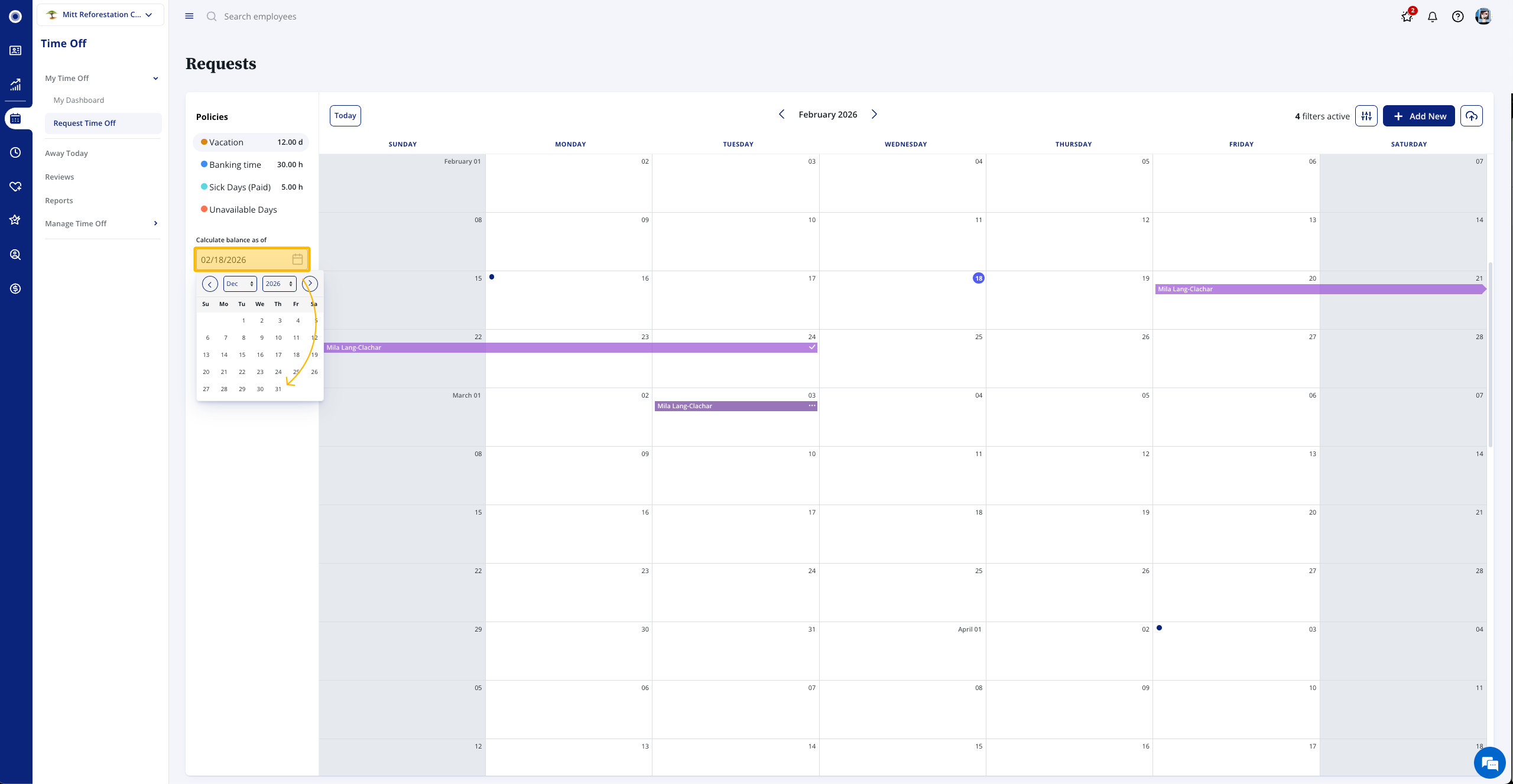 Using the future balance calculator, you can calculate how much time off you'll have accrued by a specified date. To calculate your future time off balance: