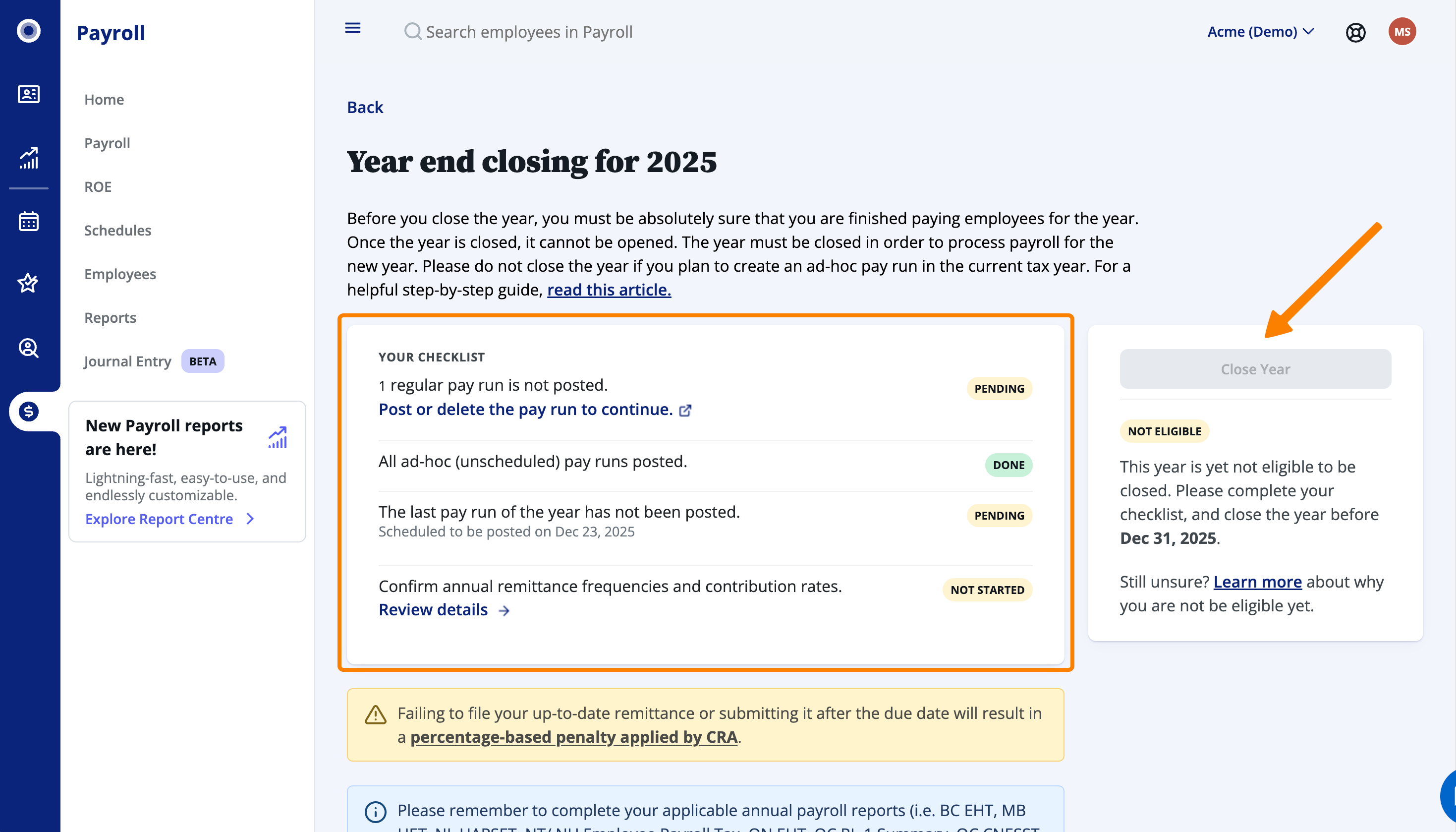 Post all regular pay runs: All your scheduled pay runs for the year must be finalized and marked as “Posted.”