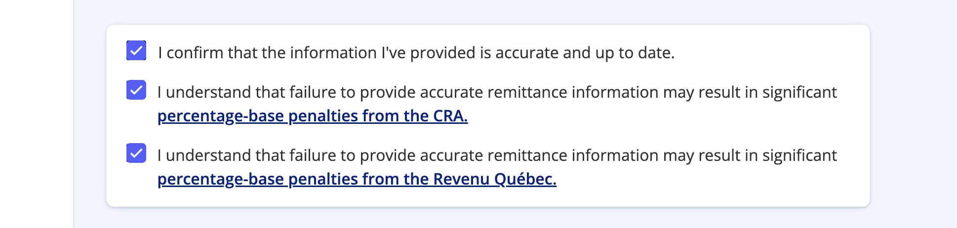 You understand that failure to provide accurate information may result in penalties from Revenu Québec.