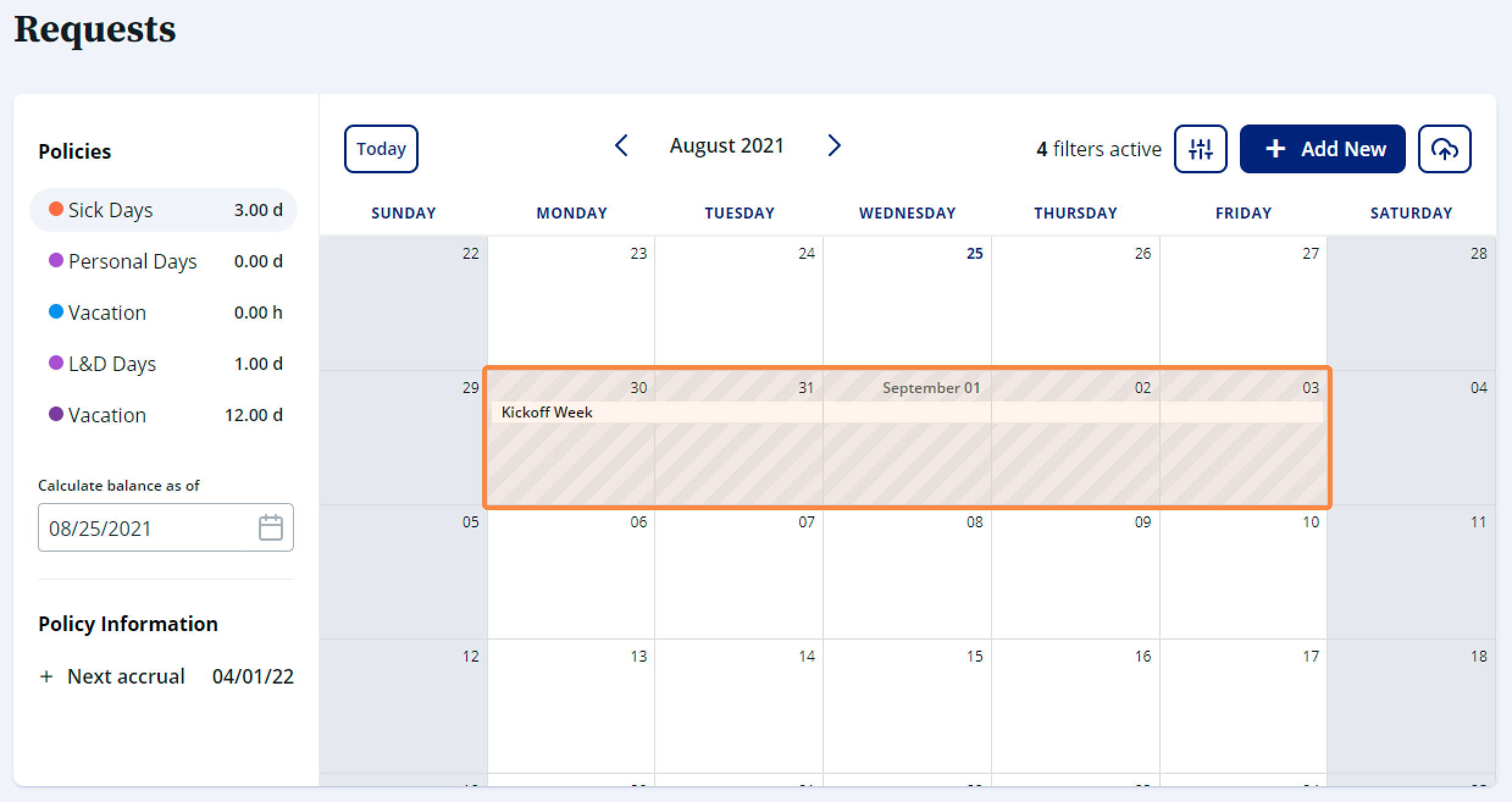 In some situations, you may require all of your employees to be working over a period of time to ensure that your organization is able to meet a tight deadline or that you’re adequately staffed for a busy stretch. By setting blackout periods, you can prevent employees from taking time off during specific times.
