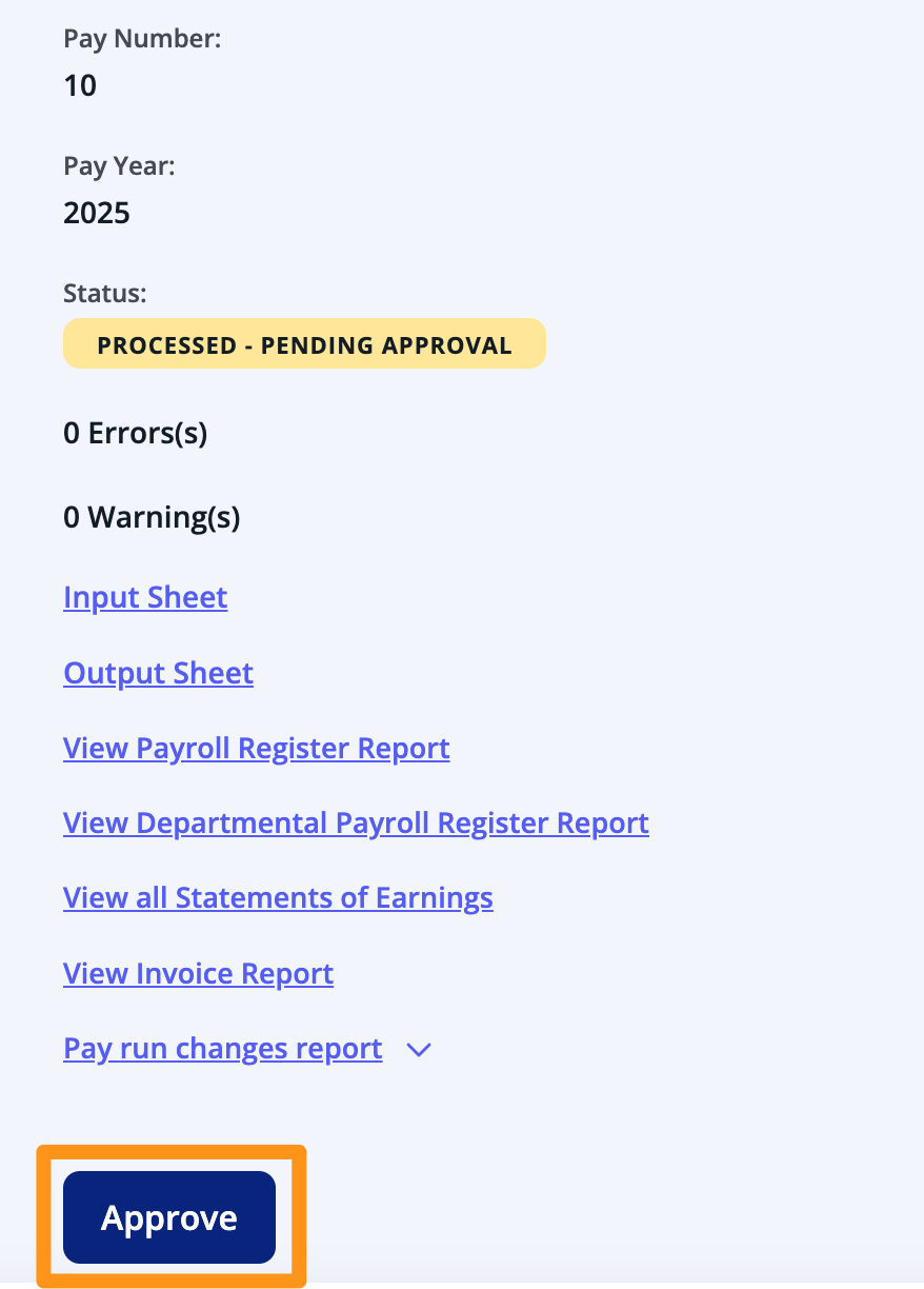 When you have reviewed your payroll and everything looks comprehensive and correct, you are ready to approve.