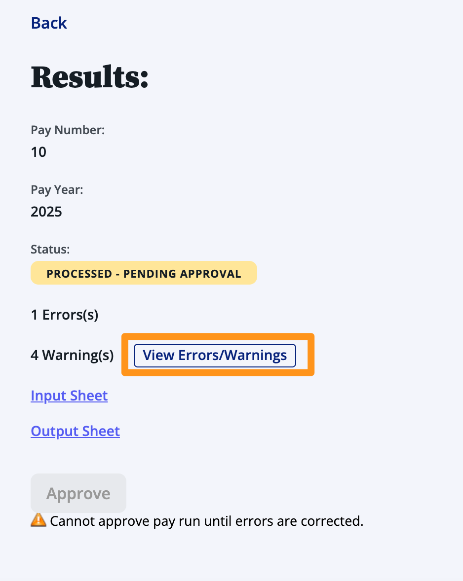 This will open a new tab where you can read over the errors and warnings associated with the pay run.