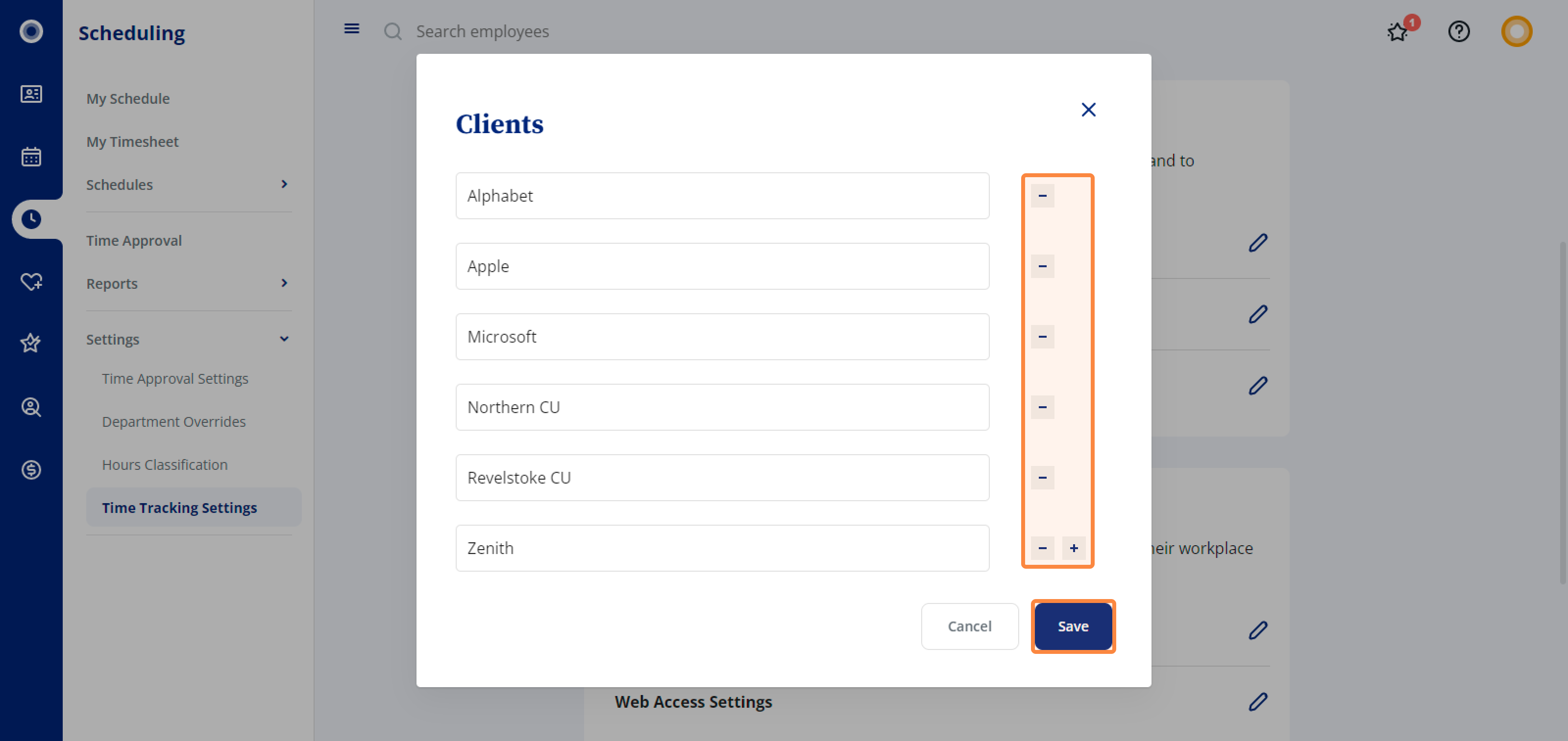 1. In Scheduling, click Time Tracking Settings on the navigation menu on the left-hand side.
