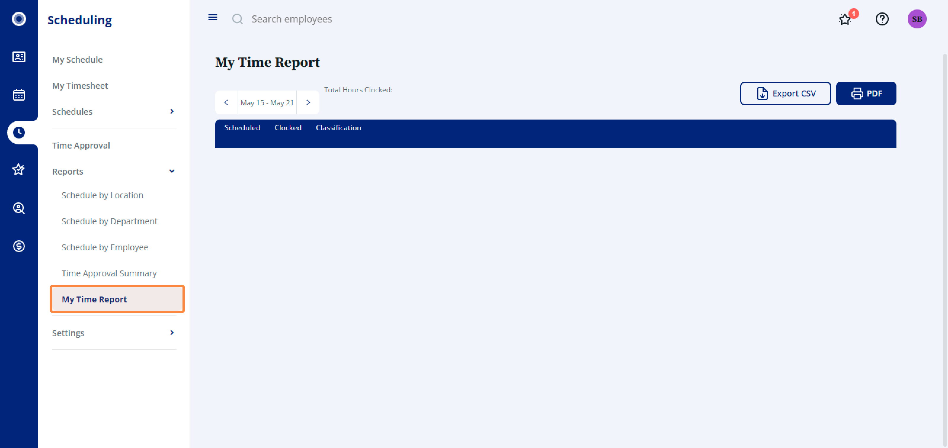 1. If you’re an Owner or an Admin, you can access the Scheduling & Time Tracking reports from the navigation menu on the left-hand side in Scheduling.