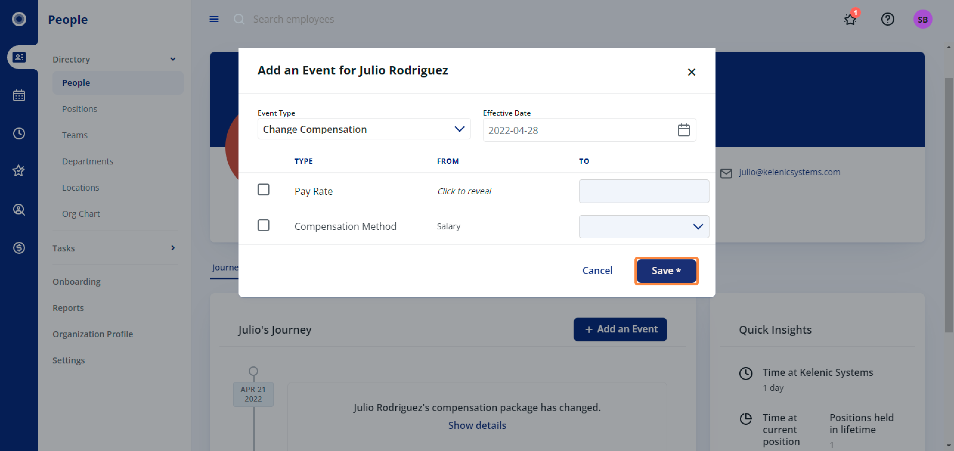 1. In People, navigate to the profile of the employee you want to adjust compensation for.