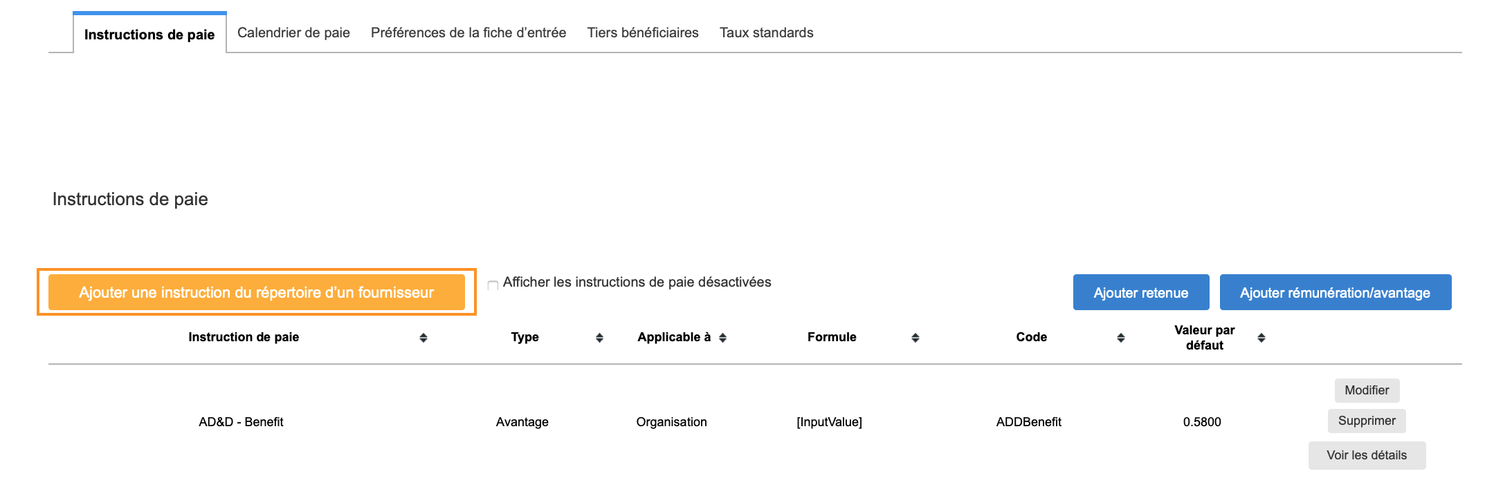 Remarque: Veuillez vous assurer que les instructions de contribution de l'employeur correspondantes pour la ou les provinces concernées sont également établies.
