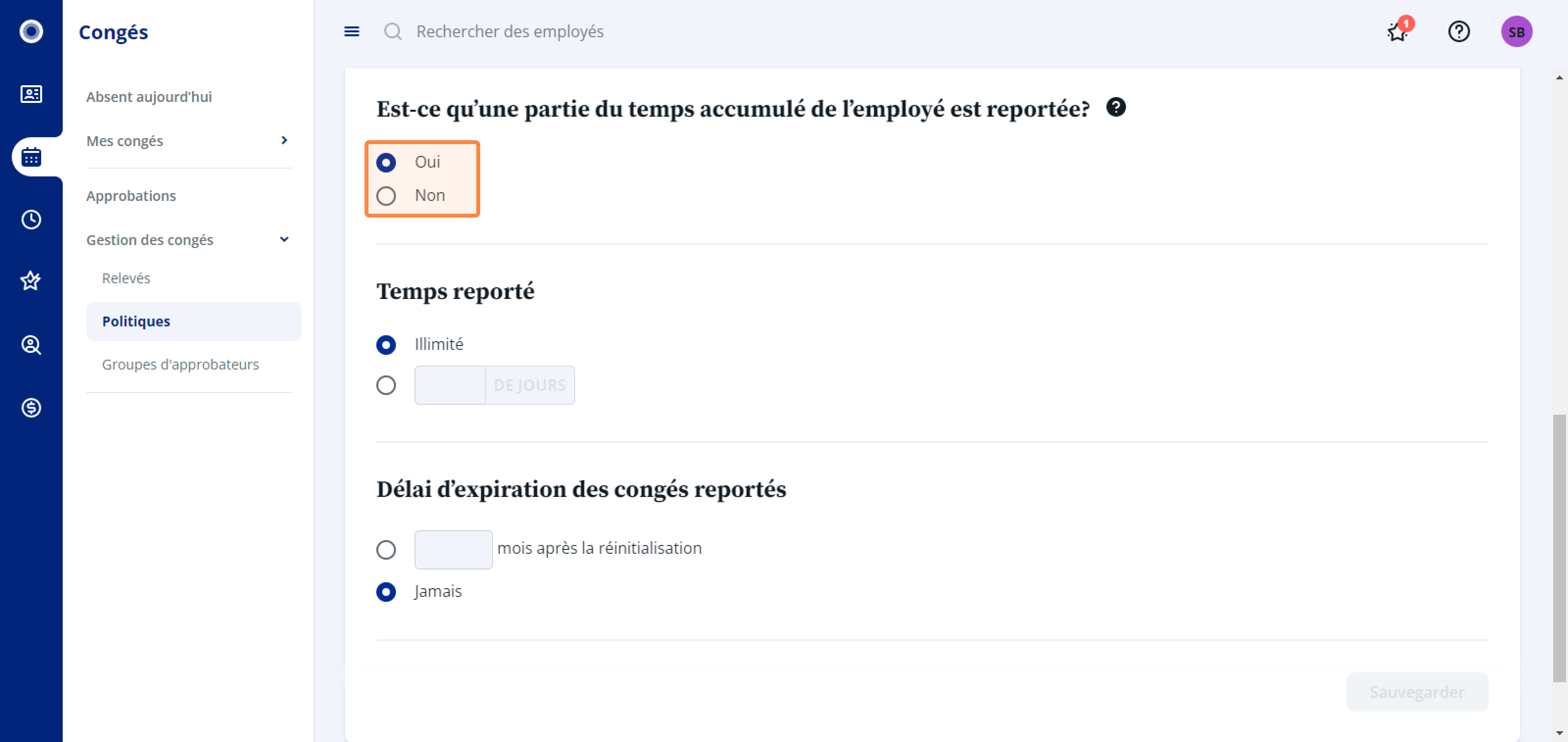 7. Spécifiez si une partie du solde de congés de l’employé est reportée.